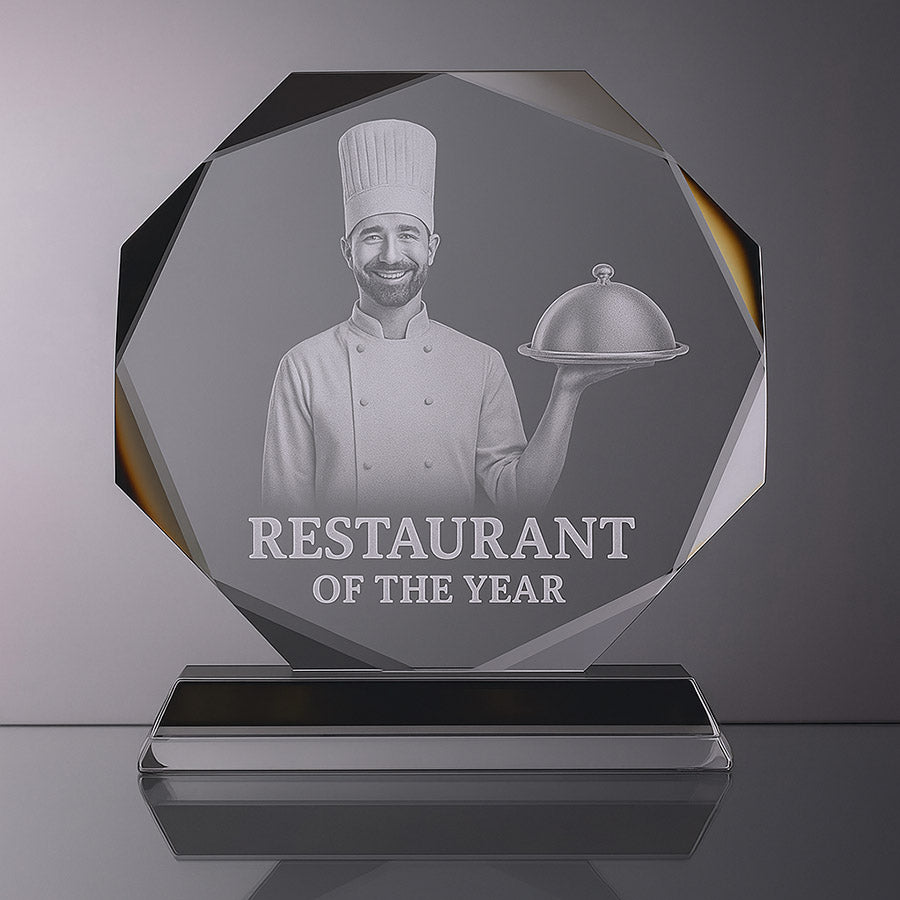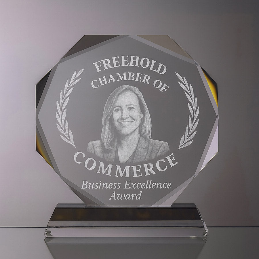 The Crystal Octagon is a bold and timeless award that instantly conveys prestige. Its eight polished edges reflect light at every angle, framing the clear front panel with clean geometric elegance. The broad, flat surface is perfect for showcasing detailed logos, portraits, or inscriptions with crisp, deep etching.