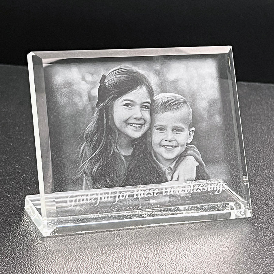 Sleek and compact, our Glass Stand is a minimalist display piece perfect for showcasing small engravings, photos, or personalized messages. This crystal-clear glass design is ideal for desks, shelves, or small spaces that deserve a refined touch. Available in both horizontal and vertical orientations, it offers flexibility while maintaining a modern, clean silhouette. A perfect blend of simplicity and sophistication.