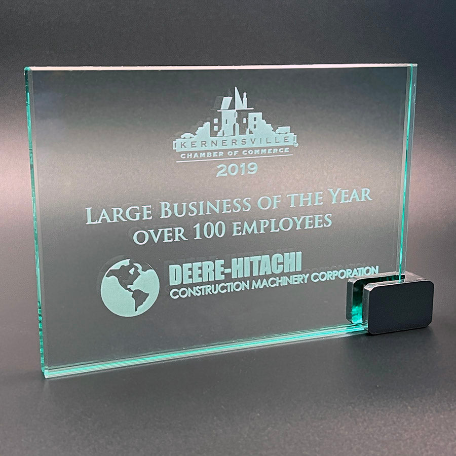 Sleek and modern with a subtle green tint, the Jade Glass with Chrome Holder offers a clean, minimalist presentation that works beautifully for both photo engraving and personalized awards. The polished chrome corner holder securely grips the glass, creating a floating effect that keeps the focus on your design.